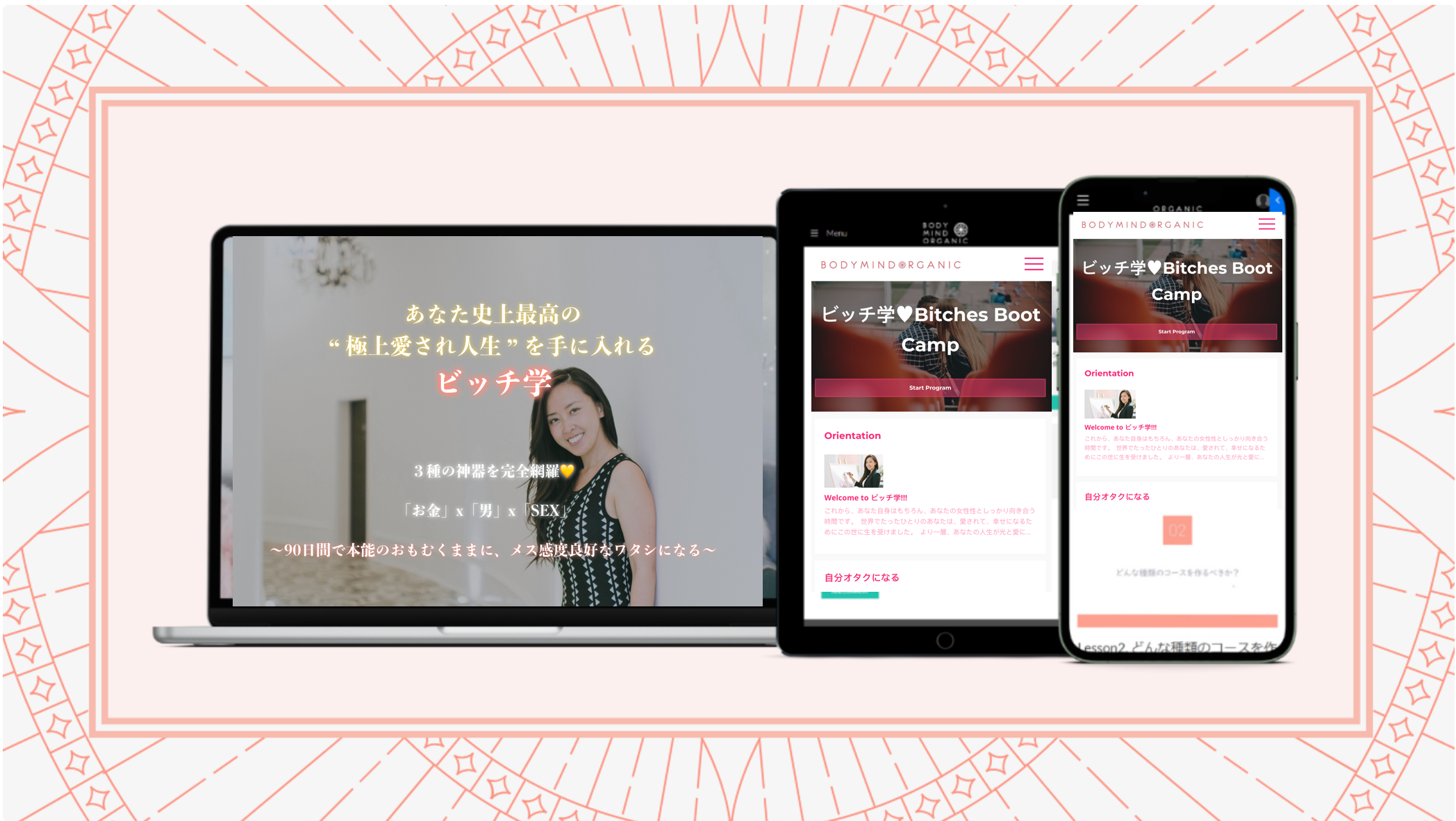 90日間 ”あなた” ”男” ”お金” ”セックス” とみっちり向き合い、あなたの本来のメス本能を開花させる12のステップです。